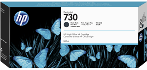 HP 730 Matte Black Ink Cartridge, P2V71A (300 ml)